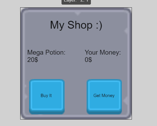 In our example, there was a static text showing how much money you lose by buying "potions". Now you can update that text to show the correct value: