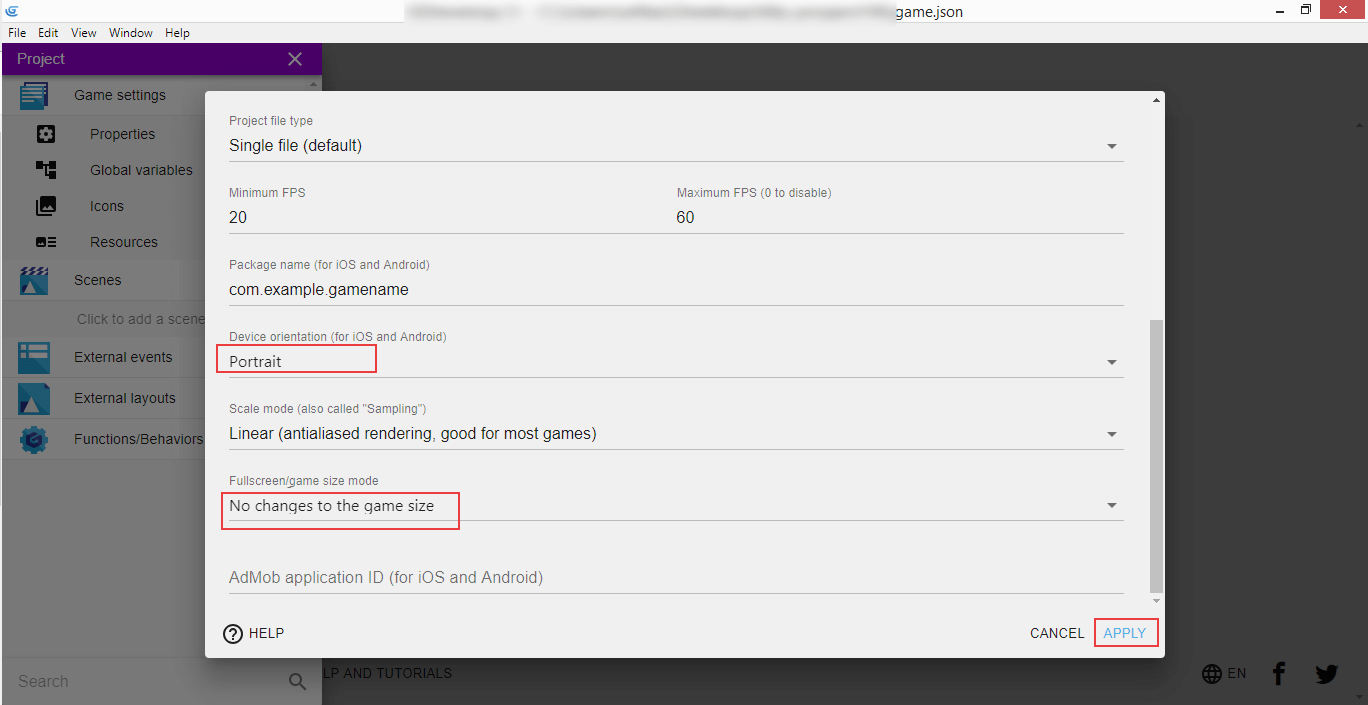 We're also gonna change the "Fullscreen" option to "No changes to the game size" as this will be handled later on.